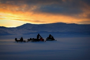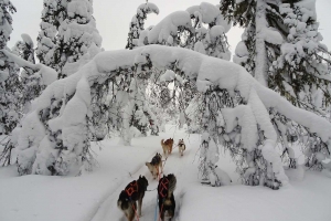 7° GIORNO – Safari con i cani da slitta e safari notturno in motoslitta Colazione a buffet e incontro con lo staff locale. Si parte per il safari nelle foreste lapponi. Nei boschi il silenzio è rotto solo dall’abbaiare dei cani e dal fruscio dei pattini delle slitte che scivolano sulla neve. Nel tardo pomeriggio si parte per una safari in motoslitta nella foresta, dove il percorso sarà illuminato soltanto dei fanali delle motoslitte e con un po’ di fortuna dai giochi di colori dell’aurora boreale. Arrivati al campo si arrostiranno salsicce al fuoco e bevande calde. |