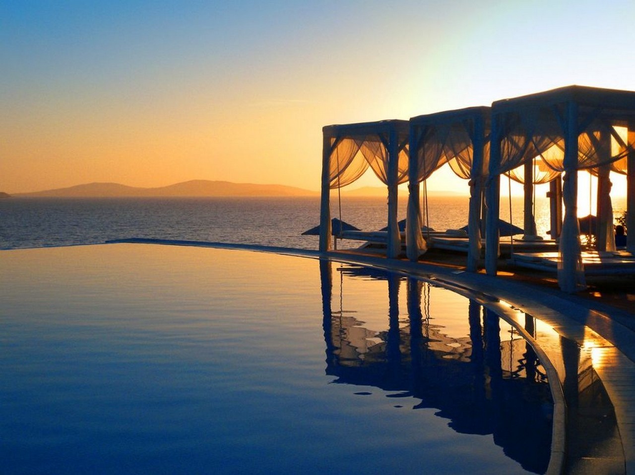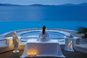 Colori cangianti, design elegante e fiori appena tagliati descrivono l’individualità che si prova e che viene riflessa da ognuna di queste eleganti suite. Bagni simili a centri termali con Jacuzzi e/o docce steam shower conducono a zone living, zone notte esclusive e di lusso, e su ampi balconi che permettono di osservare da punti di vista privilegiati la magica isola di Delos.
