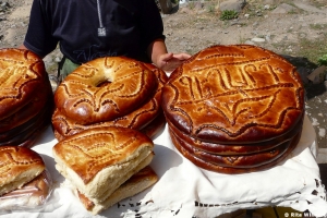 10° GIORNO - Yerevan-Garni-Geghard-Grotta di nonno Levon-Yerevan Prima colazione in albergo. Partenza per la regione di Kotayk e visita al tempio Pagano di Garni in stile romano (I sec. A.C.) e al monastero rupestre di Geghard. Pranzo a Garni da un contadino, l’unica possibilita` di assistere alla preparazione di LAVASH, pane sottile armeno! Sorpresa per i turisti-visita alla grotta di nonno Levon, scavata da lui stesso con le proprie mani. Una cosa straordinaria ed impressionante. La storia racconta sua moglie. Cena e pernottamento a Yerevan. |