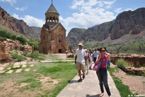 4° GIORNO - Yerevan - Khor Virap-Noravanq-Jermuk Partenza per la regione di Ararat. Visita al monastero di Khor Virap, da dove si ammira il Monte Biblico Ararat. Si continua il viaggio visitando il villaggio di Areni, famoso per i suoi vini. Degustazione del vino armeno. Visita al Monastero di Noravank, suggestivo per la sua posizione tra le montagne rosse. Arrivo alla citta` di Jermuk, famoso per le sue sorgenti calde ed il bellissimo paesaggio montano. City tour a Jermuk, visitando la galleria dell’acqua minerale e la cascata di Jermuk. . |